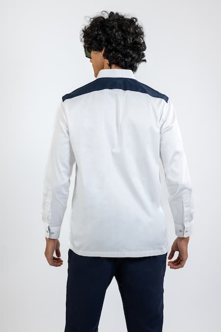 White 100% Cotton Embroidered Thread Royal Monkey Placement Pocket Shirt