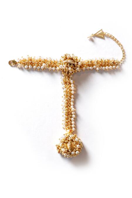 Gold Plated Pearls, Beads Chandralekha Shell Embroidered Hathphool