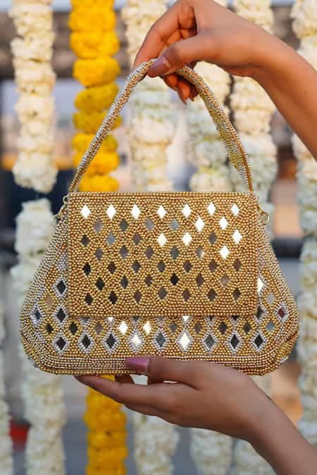 Gold Mirrors, Beads Designer Umika Clutch Bag