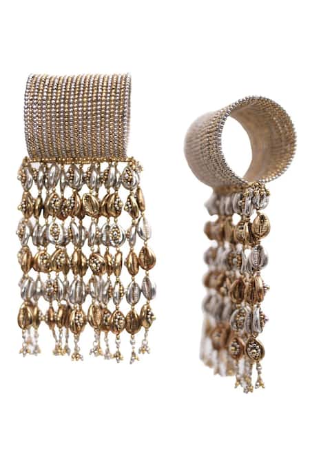 Cascading design of shells and beads, Intricate beadwork detailing, Antique finish with a luxurious look