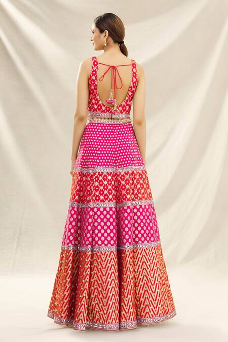 Bead tassels >Kamar latkans >Chevron & striped pattern >Tassel tie-up back >Closure: Blouse: Back hooks