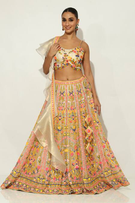 Multi Color Organza Sequins, Beads, Embroidery Scoop Gullista Bloom Lehenga Set