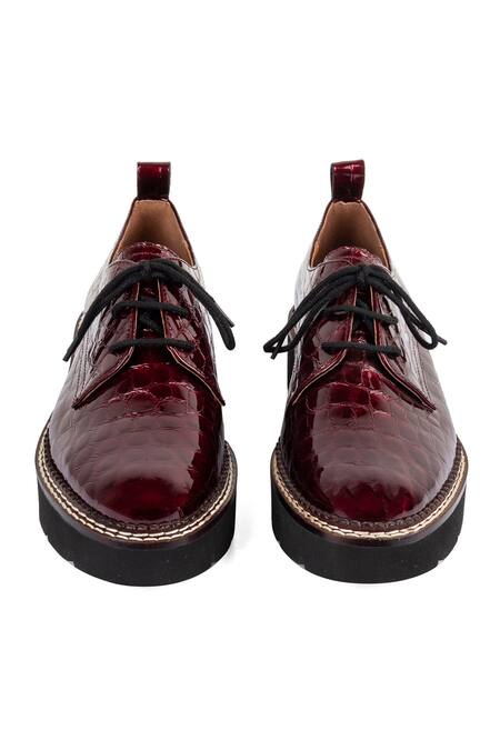 Crocodile texture detailing, Lace-up design for adjustable fit, Thick flat sole for added comfort