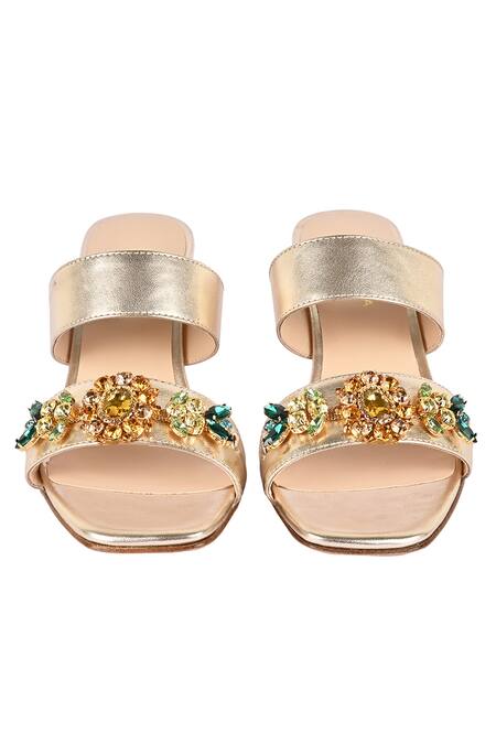 Gold Crystals Designer Delta Embellished Heels