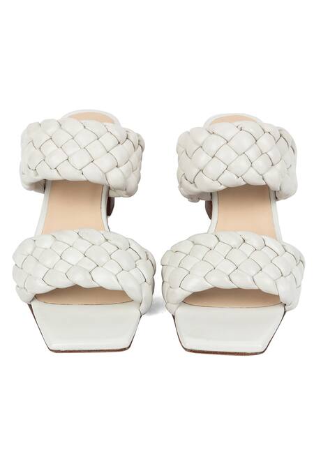 White open toe block heels featuring quilted soft nappa leather straps