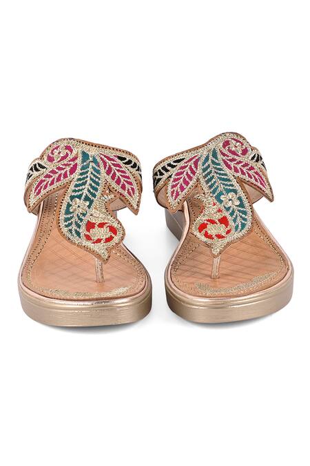Intricate floral embroidery on the strap, Comfortable slip-on design, 5 cm wedge heel for added height