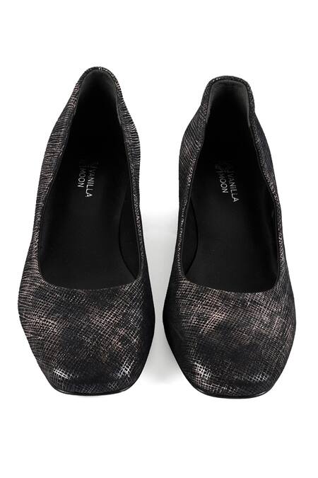 Black Glitter Frances Metallic Flared Heel Pumps