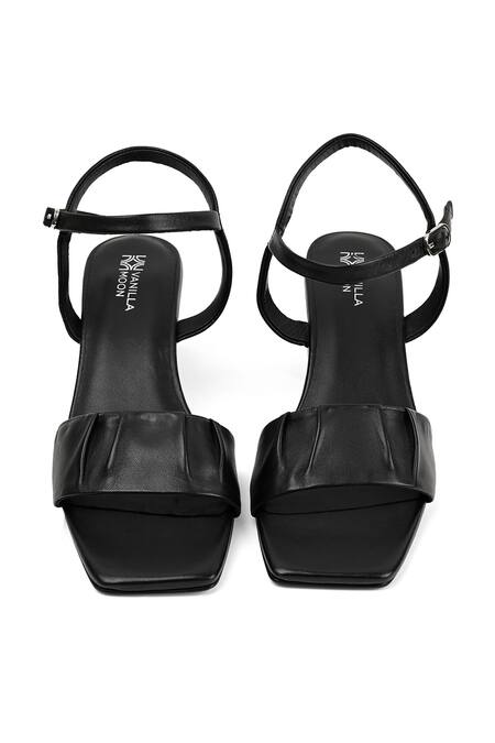 Black Isa Strap Pleated Heels