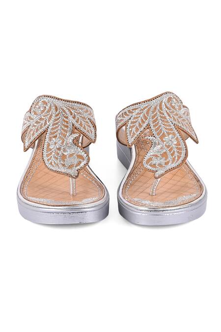 Intricate silver embroidery on the upper, Comfortable padded footbed, Stylish 5 cm wedge heel
