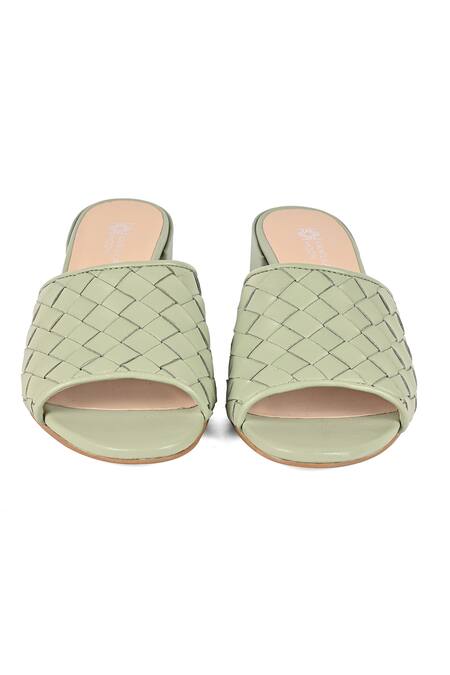 Green Natty Broad Weave Pattern Mules