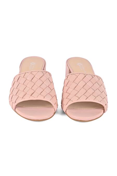 Pink Brooches Natty Leather Broad Weave Pattern Mules