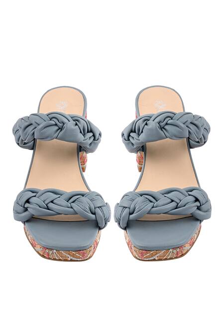 Blue Embroidery Sasha Braided Strap Platform Sandals