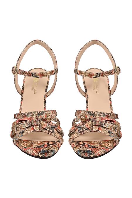 Bow knotted details on straps, Multi strap design, Ankle buckle straps