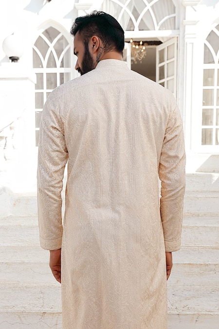 Beige Silk Embroidered Kurta Set
