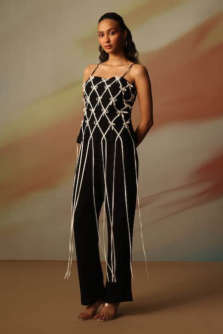 Intricate detailing on the strapless top, Stylish tie-up elements on the pants