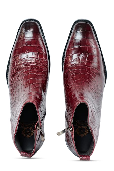 Maroon Cut Work Crocodile Textured Leather Boots