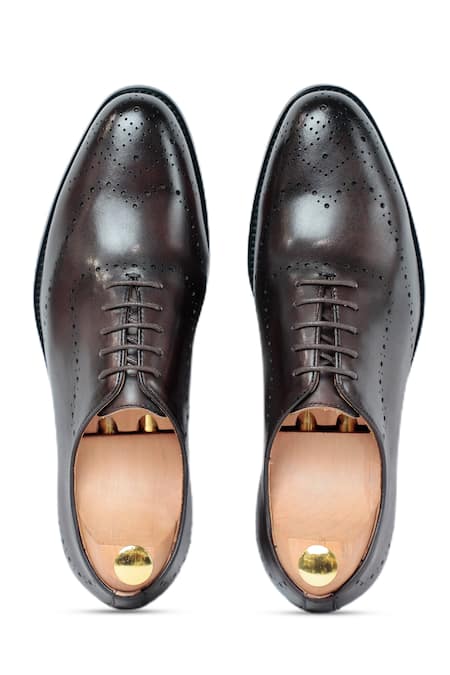 Brown lace-up brogue shoes featuring perforated detailing and a classic silhouette