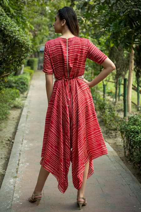Red Silk Chanderi Cowl Jumpsuit With Belt