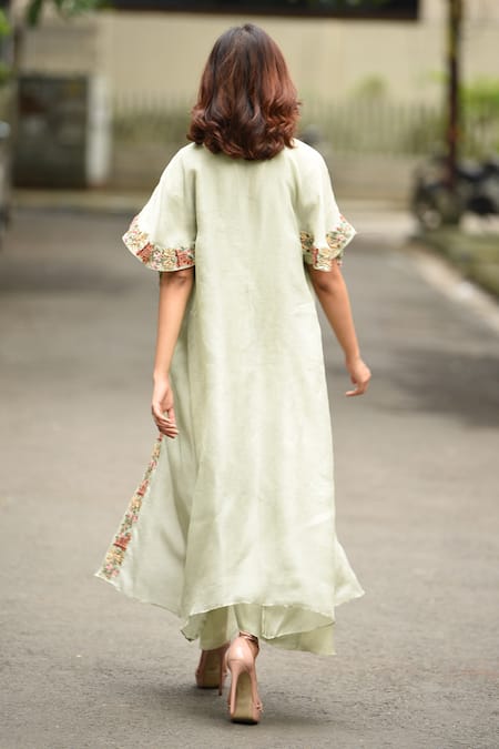 Buy_Vara By Vibha N Priti_Green Organza, Munga Silk Round Jumpsuit With Jacket _Online_at_Aza_Fashions