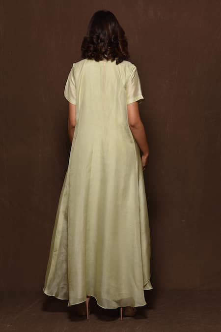 Green Silk, Organza Round Jumpsuit With Jacket