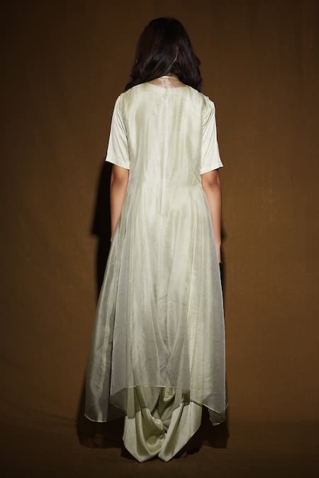 Buy_Vara By Vibha N Priti_Green Organza, Munga Silk Round Jumpsuit With Jacket _Online_at_Aza_Fashions