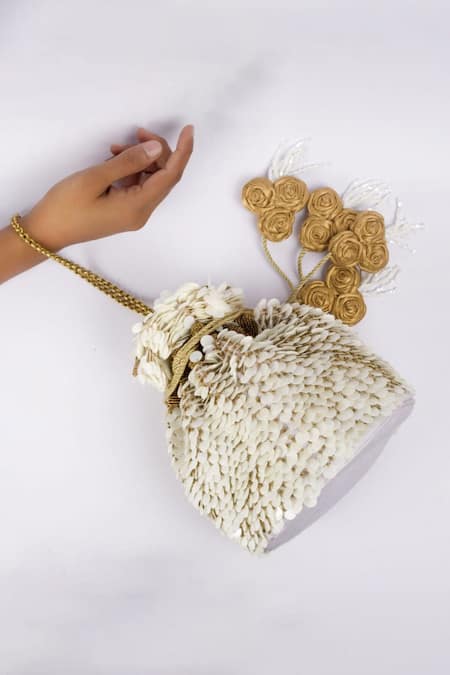 All over sequin-bead petal embroidery, Handmade flower tassels detailing