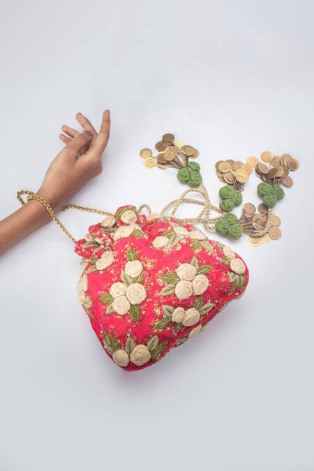 Pink Zardozi Rosa And Sequin Embroidered Potli Bag