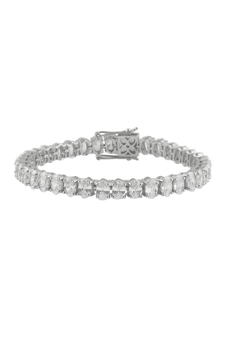 Tennis bracelet featuring white oval CZ stones set in a brass base