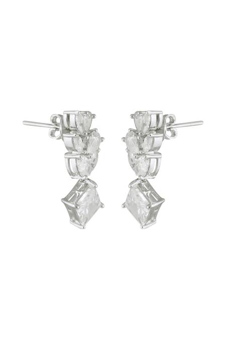 White earrings handcrafted with 22k gold and silver rhodium plating, featuring multi-shape CZ stones in a vine motif