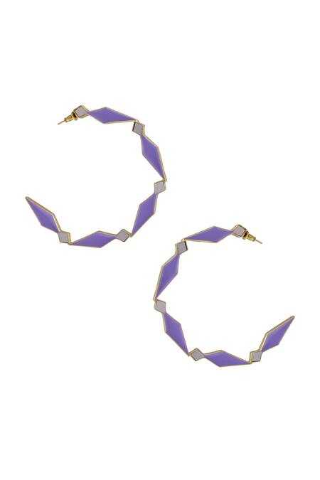 Gold hoops featuring lilac enamelled geometric motifs and cutwork details