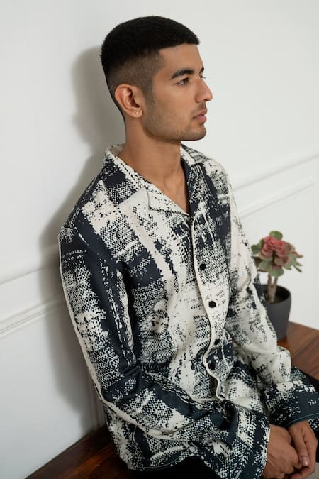 Charcoal black cotton shirt in a distressed pattern all-over prints.