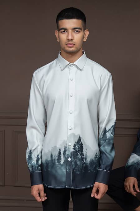 Ivory midnight forest cotton shirt with a dark night at forest patterns.