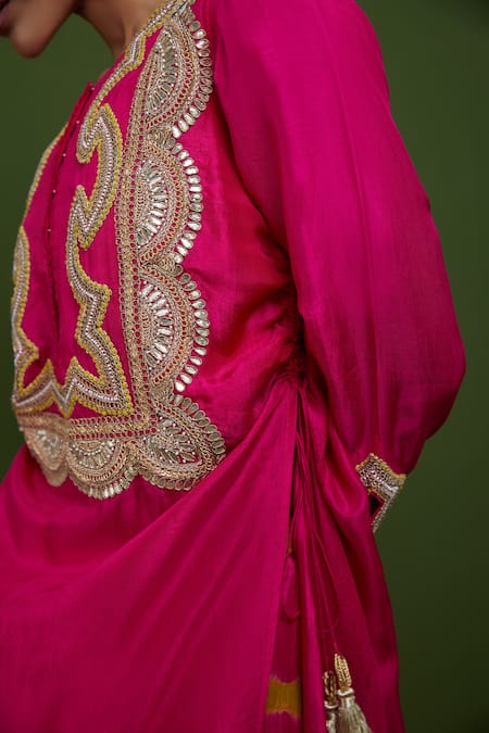 Pink Silk Embroidery, Sequins Round Neck Gota Kurta And Circular Palazzo Set