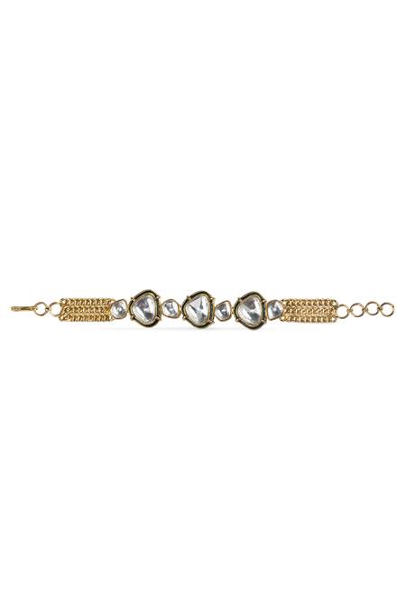Silver Plated Crystals Geometric Kundan And Cubic Zirconia Bracelet