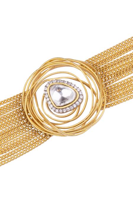 Gold tone rhodium plated wired bracelet featuring American diamond stone and kundan studded design