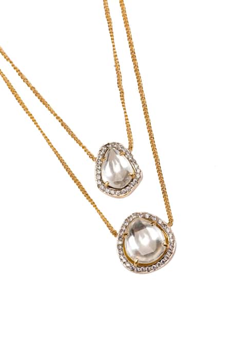 Gold tone rhodium plated layered necklace featuring white kundan and American diamond stone embellishments