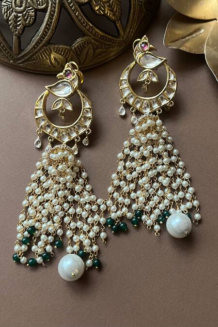 Buy_Vasundhara_Gold Plated Pearls, Gota Patti Kundan And Embellished Earrings_at_Aza_Fashions