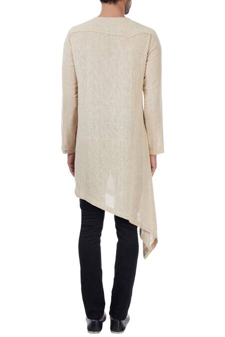 Buy_Vavci_Beige Linen Jute Woven Asymmetric Kurta_Online_at_Aza_Fashions