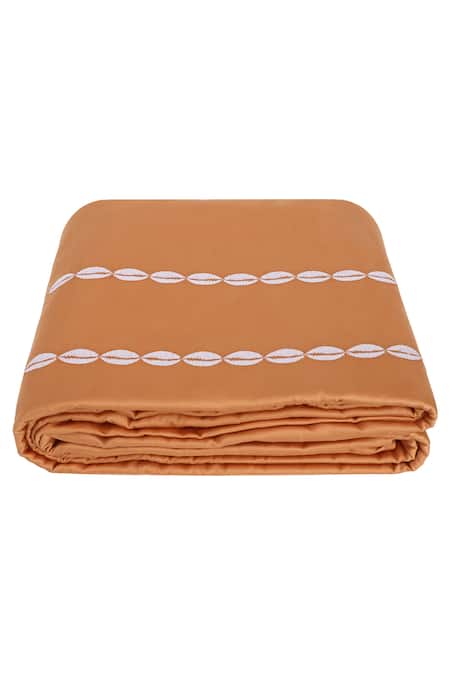 Brown 100% Cotton Thread Work Sea Shell Embroidered Duvet Cover - Single Pc