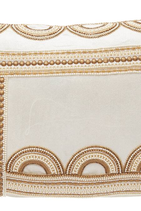 White rectangle-shaped cushion cover with all-over sequin & bead work. Comes with filler.