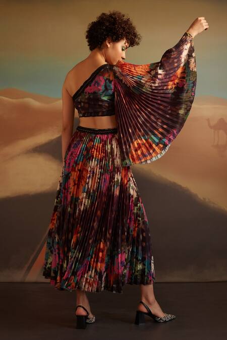 Multicolor skirt featuring an all-over floral pattern in a pleated design
