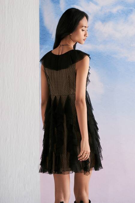 Ruffle textured panels along the dress, V neckline adds a stylish touch, Lightweight tulle fabric for comfort