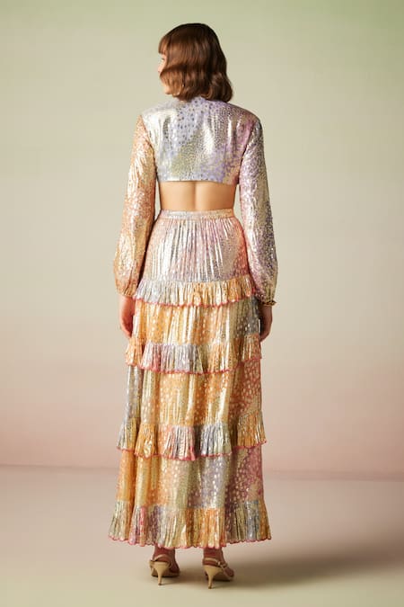 Multi Color Viscose, Lurex, Georgette Sequins, Embroidery Embellished Crop Top
