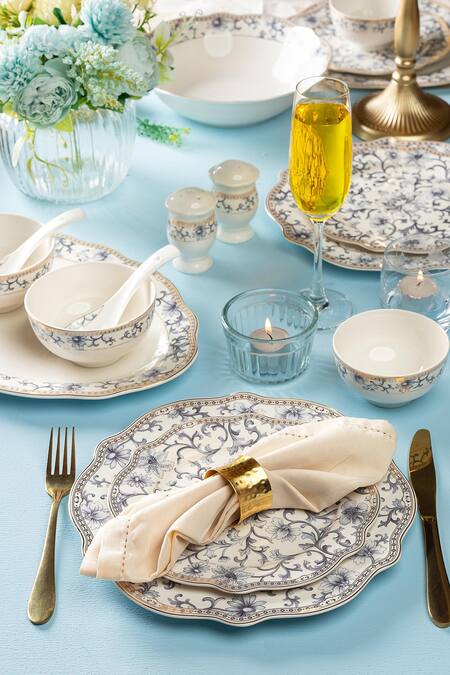 Blue Finest Premium Porcelain Floral Dinner Of 36