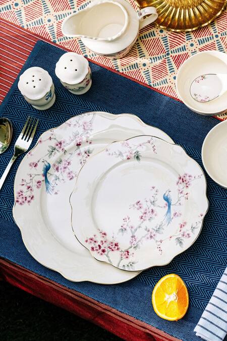Multi Color Finest Premium Porcelain Orchids And Peacock Pattern Bliss Dinner Set