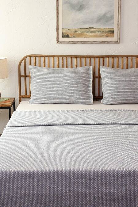 Buy_House This_Blue 100% Cotton Vindhya Checkered Pattern Bedcover_at_Aza_Fashions