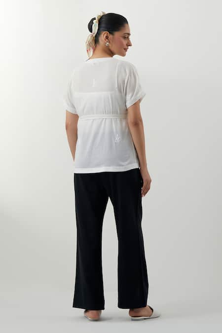 Buy_Vinusto_White Cotton Embroidery V-neck Chikankari Top And Black Pant _Online_at_Aza_Fashions