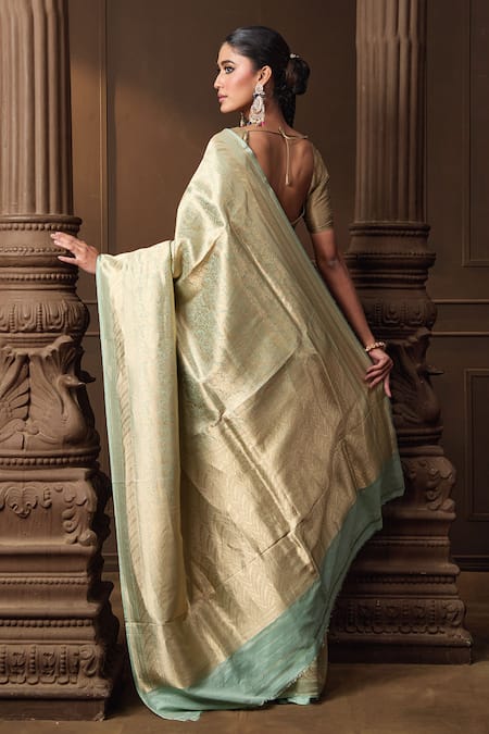A mint pure handwoven Banarsi silk saree featuring brocade weave.