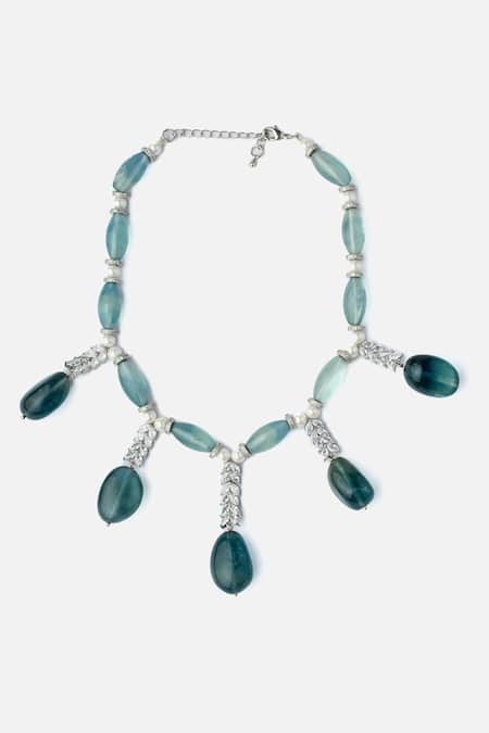 Green Aqua Bead And Pearl Embellished Necklace