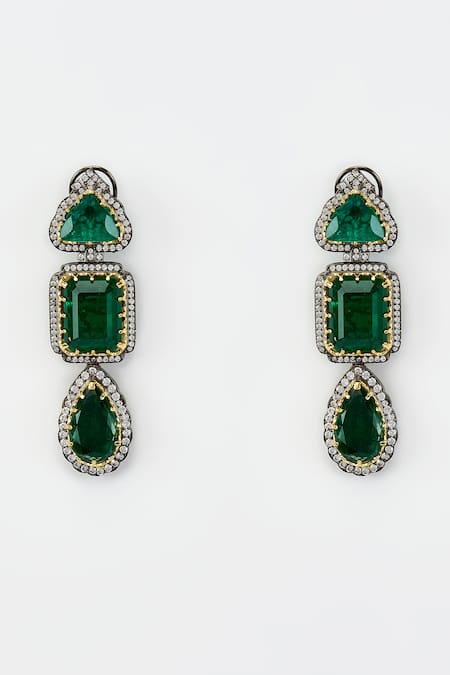 Embellished with clear & green cubic zirconia, Geometric pattern design, Push back clasp closure